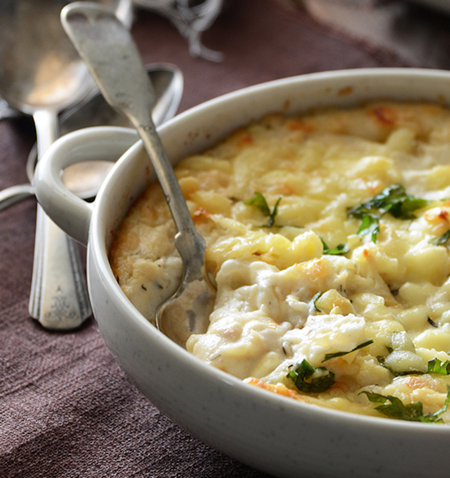 Mit dieser käsigen Nachahmung verpassen Sie nie wieder Maswed-Kartoffeln, wobei Sie stattdessen Kohlkohlkohlkohlmarke verwenden. Cremige Schwimmen oder Emmentale Mischung mit Frischkäse, Salz, Pfeffer, Butter und Zwiebeln, mit optionaler schwerer Sahne. Hey, wir sagten Glutenfrei, nicht Milchfrei!