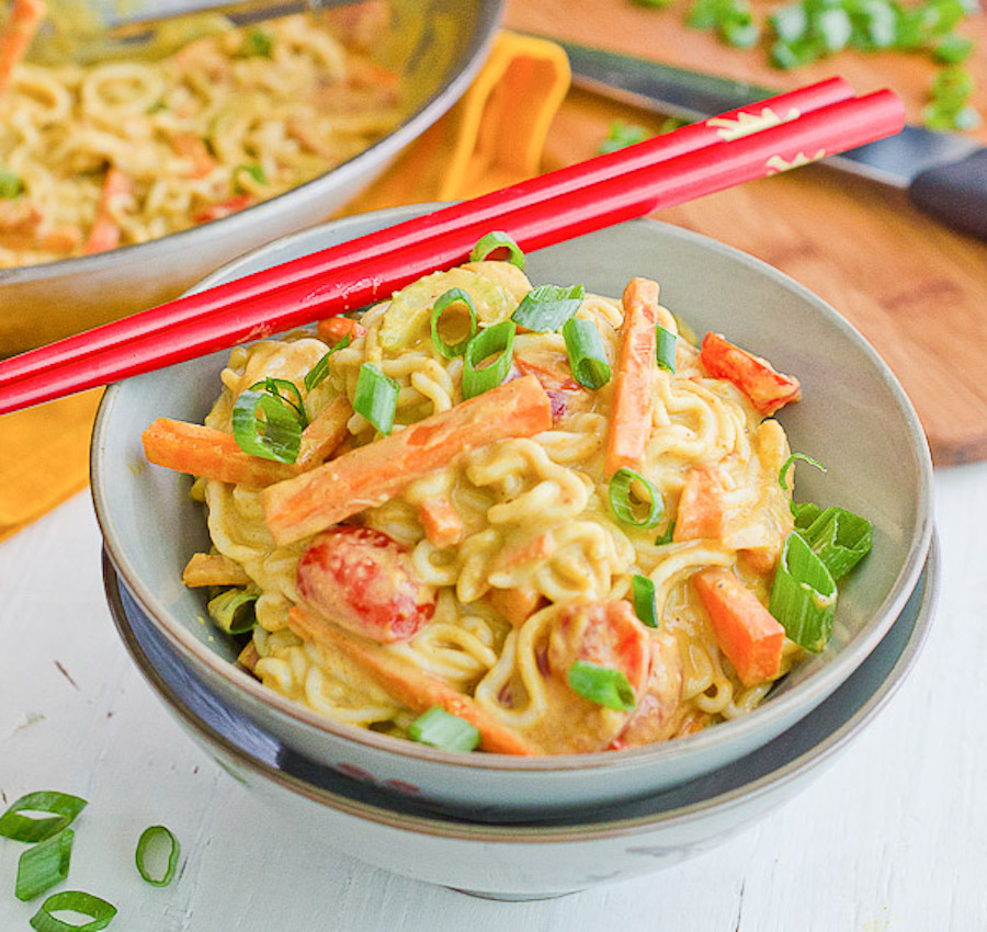 10. Nudeln in einer cremigen Kokosnuss-Erdnusssauce