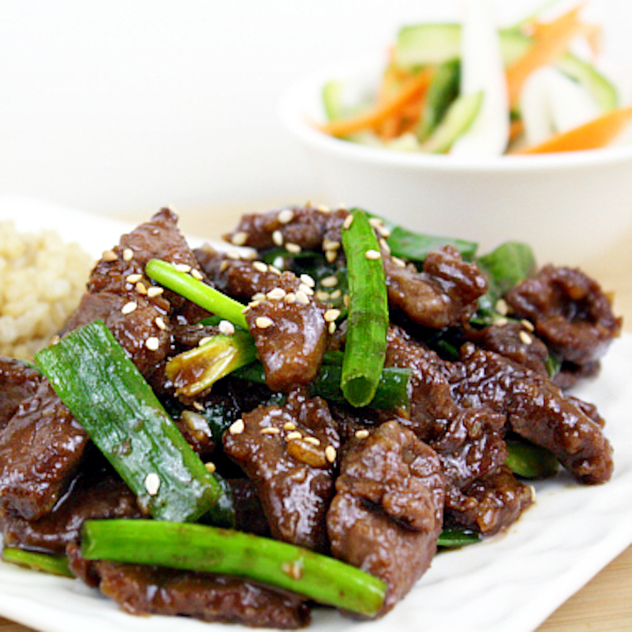 Holen Sie sich nie wieder chinesische Take vom Food Court mit diesem sukkulenten mongolischen Rindfleischrezept. Grüne Zwiebeln und Sesam-Samen tasten dieses Teller, das ein niedrigeres Natrium hat als seine ungesunden Wettbewerber.