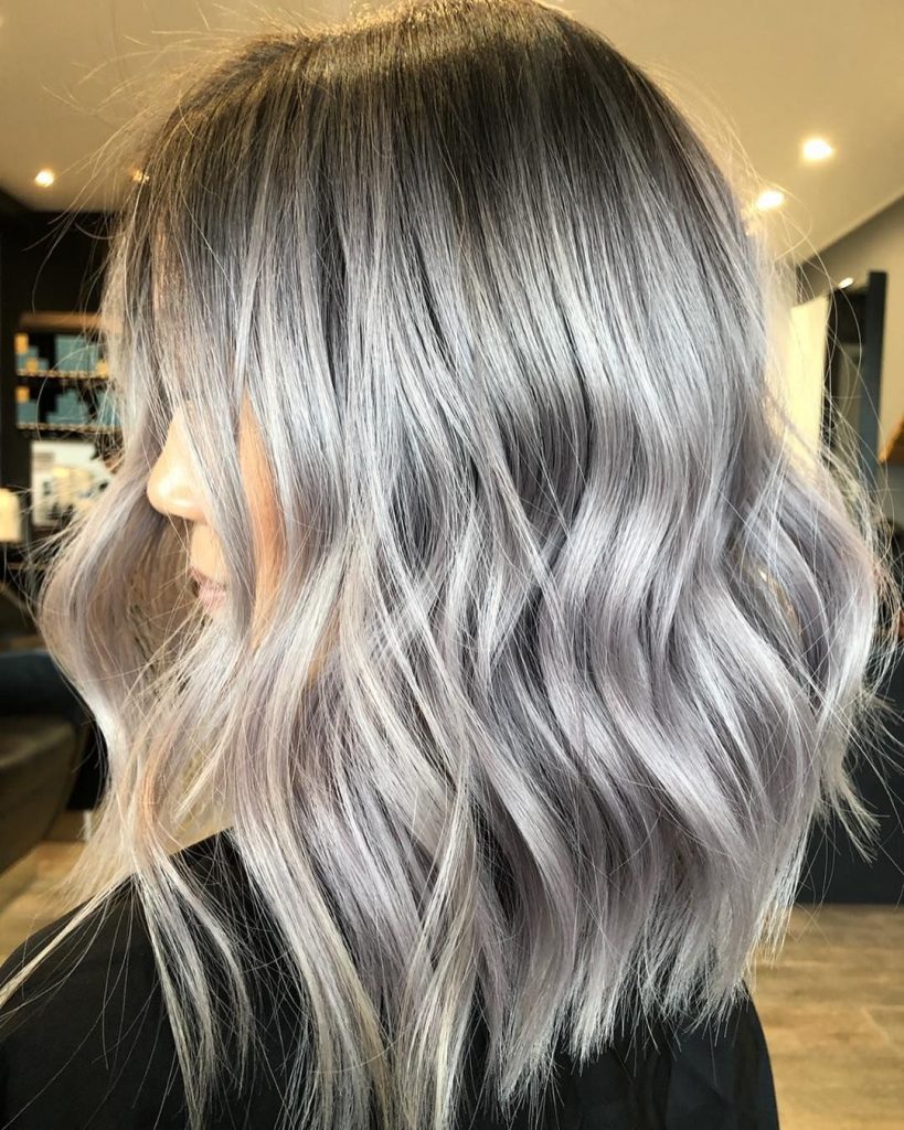Dieser Look ist ein Schritt über Ash blond, und Sie können diese eisige graue Farbe in dem gewünschten Schatten interpretieren. Es ist eine fantastische Art, vorhandene Grausteine ohne die Erhaltung dunklerer Farben zu verbergen, und es sieht überraschend schick auf allen Haartönen aus. Suchen Sie nach Ihrer inneren Eiskönigin mit rauchigen und eisigen Silbertönen, die zeitlos hip sind. Obwohl es für jeden vielseitig vielseitig ist, machen kühlere Hauttöne am besten mit diesem Farbstoffjob. Probieren Sie für wärmere Töne ein icierer Beige an.