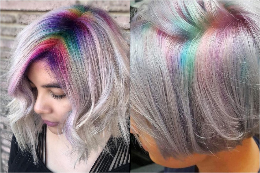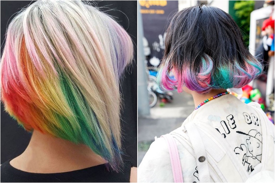 Regenbogenhaare sieht auch gut aus auf LOBs und Bobs. Sie können nur die Unterseite Ihrer Haare oder nur die Enden tun, wenn Sie nicht den ganzen Weg regenbogen wollen. So oder so ist das Ergebnis absolut atemberaubend und sicher ein Kopfwehrer.