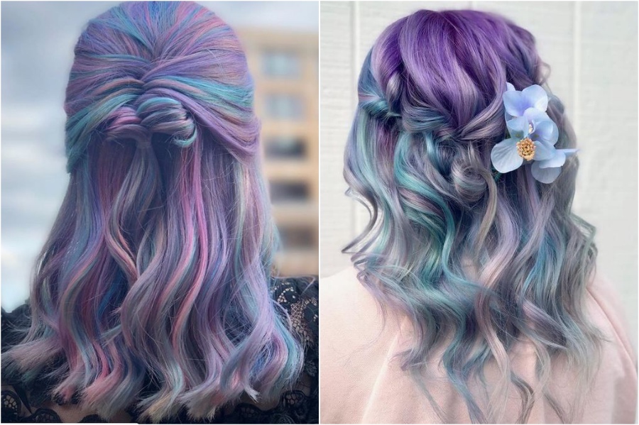 Möglicherweise ist meine Lieblingsvariation des Regenbogenhaares kalt getönte Pastelle. Blues und Purpur sehen nur so magisch aus und ich denke, das ist das beste Haar für den Frühling. Ok, Sie können dies auch einen Hauch von Rosa hinzufügen. Glaubst du nicht, dass dieses Haar jedes einzelnen Frühlingskleid ergänzt, das du hast?
