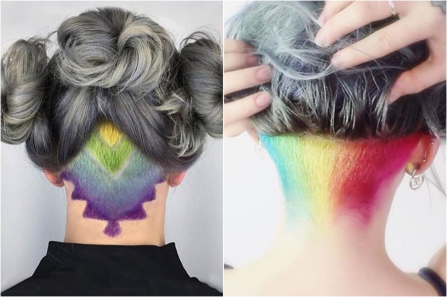 Ein Unterschnitt allein ist nicht mehr so aufregend. Aber machen Sie es Regenbogen und plötzlich ist es wie ein Atem frischer Luft. Ich denke, es sieht besonders schön aus, wenn Sie verschiedene geometrische Formen integrieren.