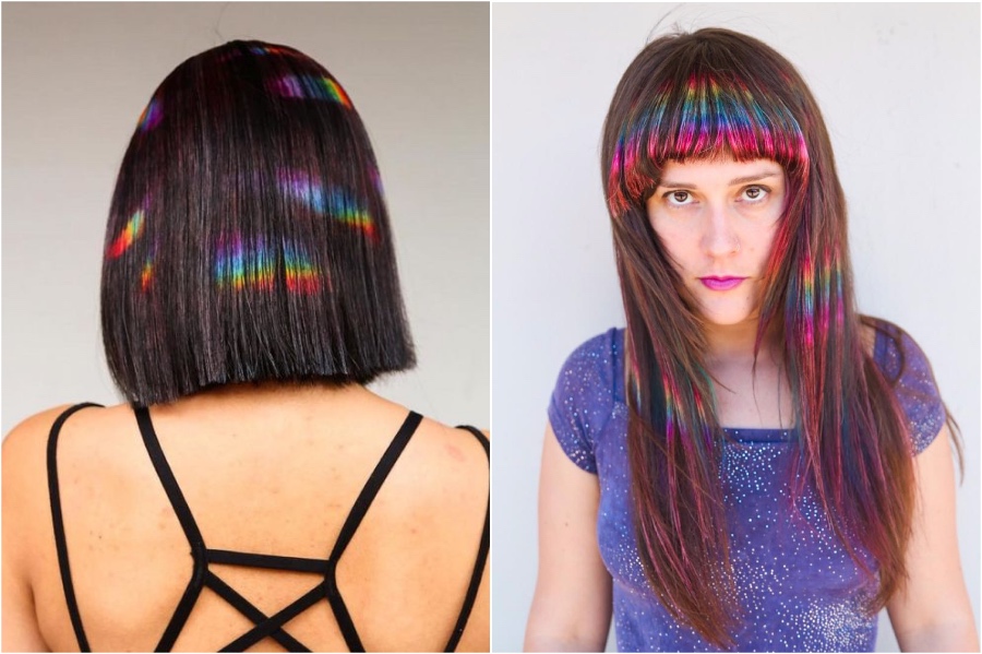 Eine der neuesten Trends im Regenbogenhaar ist Prismenhaar. Die Idee ist, nur kleine Haarabschnitte zu färben, um es so auszusehen, als würden Sie das Licht durch ein Prisma fangen. Wer Instagram oder Snapchat-Filter benötigt, wenn Sie diesen Effekt mit nur einem Haarfärbemittel dauerhaft bekommen können.