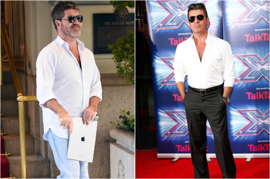 Der Snarky Talent Show Richter ist bekannt für seine Liebe zu tiefen V-Necks. Er trägt immer ein tieferes T-Shirt mit V-Ausschnitt mit Jeans oder, wenn er sich ein bisschen anziehen will, trägt er einen Blazer und einen Button unten oder einen Anzug, aber das Hemd ist immer aufgeknöpft, um ein tiefes V zu erstellen.