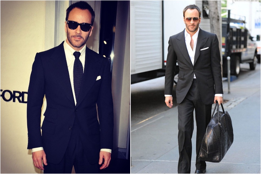 Tom Ford entwirft ziemlich erstaunliche Anzüge und er trägt sie mit Stolz. Er sagt, er fühlt sich in einem Anzug angenehm und mächtig an, während in Jumper und weichen Dingen er alle weich und matschig fühlt und nicht gut. Er trägt auch Stiefel, denn das ist das, was ihn stark fühlt und mehr als jeder andere Schuh fühlt.
