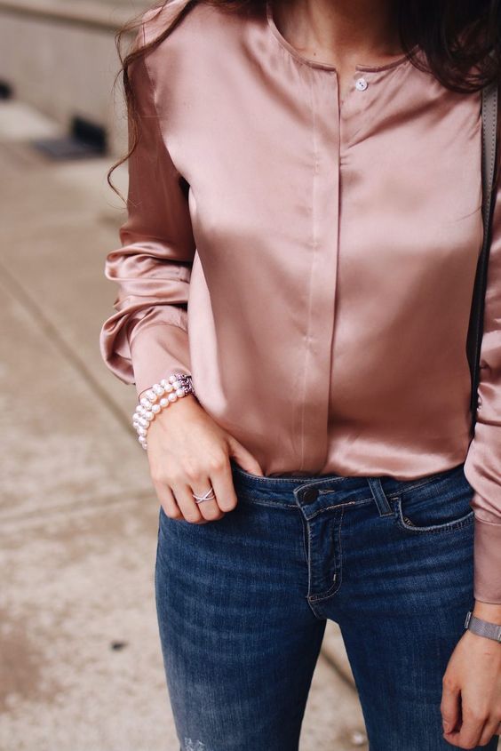Wir sind besessen, wie unterschiedlich eine Seidenbluse mit unterschiedlichen Kleidungsstücken aussehen kann - in hohe Taille-Jeans, es ist das perfekte Work-to-Happy-Stunde-Übergangsstück. Mit einem Bleistiftrock? Ich werde die Eltern von Bae treffen. Mit engen Lederjeans, dem perfekten Konzertlook!
