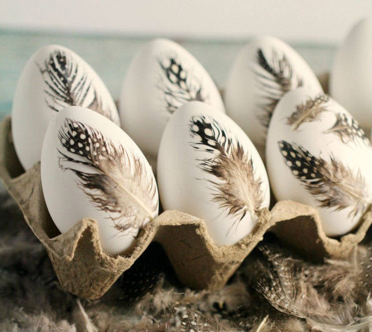 Diese Eier sind elegant und unauffällungsreich genug für Erwachsene - kommen nur zusammen. Außerdem sind sie aus den Faux-Ostereiern im Dollar-Laden anstelle der unordentlichen, rissigen Natur der echten Eierschalen hergestellt. Nur auf der Feder putzen und trocknen lassen!