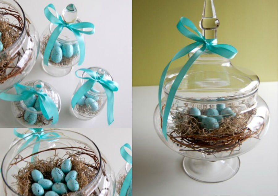 Es gibt nur wenige Dinge, die hübscher und symbolischer Ostern als ein Robins Eiernest. Bring Mutter Natur in dein Haus mit dieser organischen Mischung aus natürlichen Bräunen und exquisiten Türkis. Alles, was Sie für dieses Display brauchen, ist ein klares Glas, Holzeier, Farbe, Moos, Bänder und ein Kranz.
