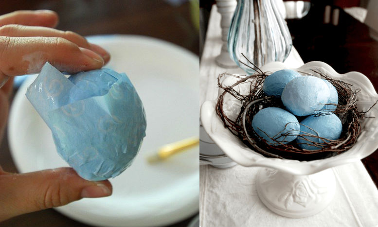 Dieser DIY-Crafter benutzte den Papiercache, um ihre Eier wirklich zu machen. Verwenden von Gewebepapierstreifen, die sich langsam fast 20 Stück auf jedes Ei schichten. Dies könnte nur eine Aufgabe für Eltern sein, da er klebrige kleine Finger frustrieren kann.