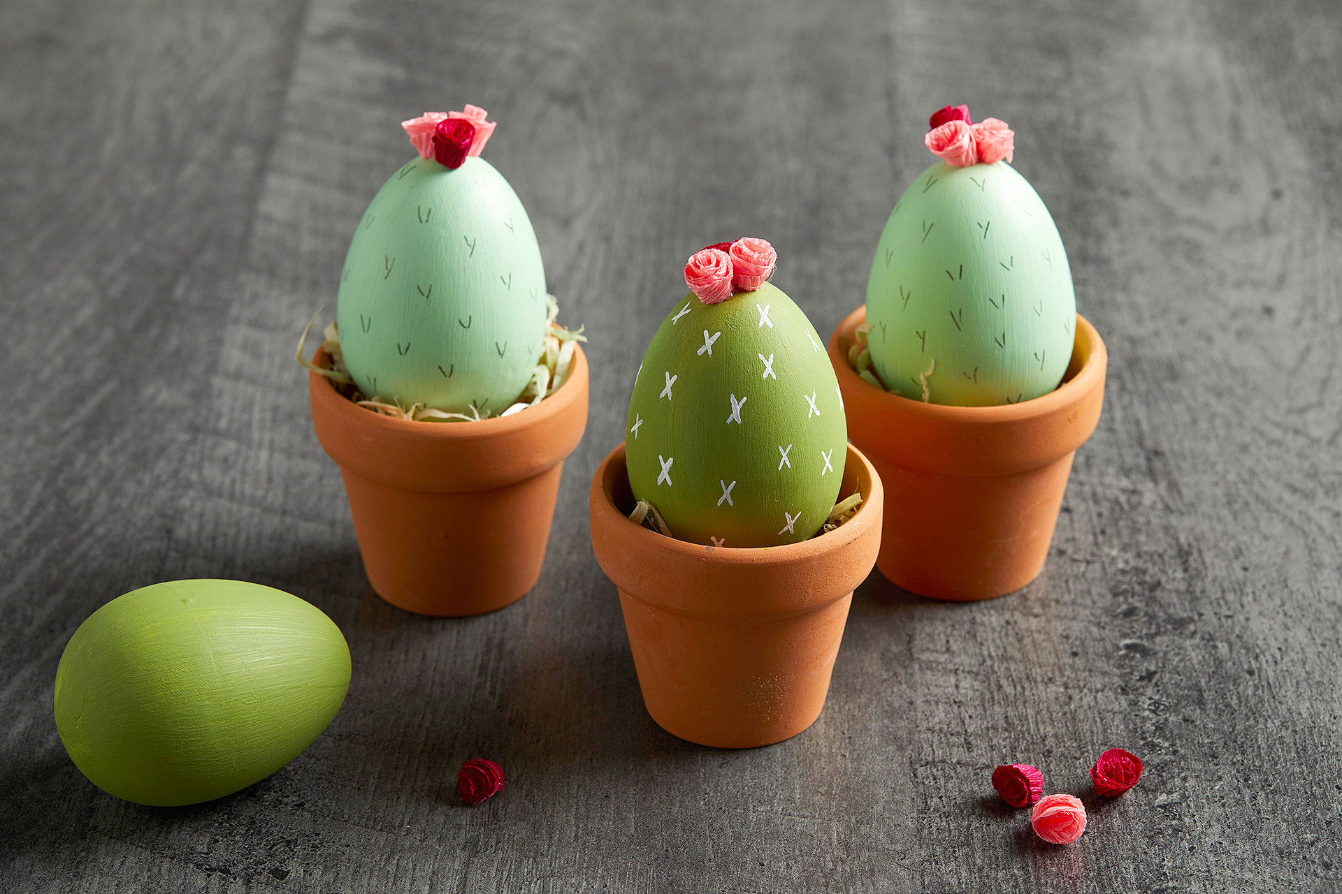 Willst du eine südwestliche Twist auf Ostern? Diese unwiderstehlich niedlichen Kaktuseier sind definitiv die Antwort. Mit Terra Cotta-Töpfen, grüner Acryl-Handwerksfarbe und -krepppapier auf keramischen Eiern sind es fast besser als die ursprünglichen Pastellversionen.
