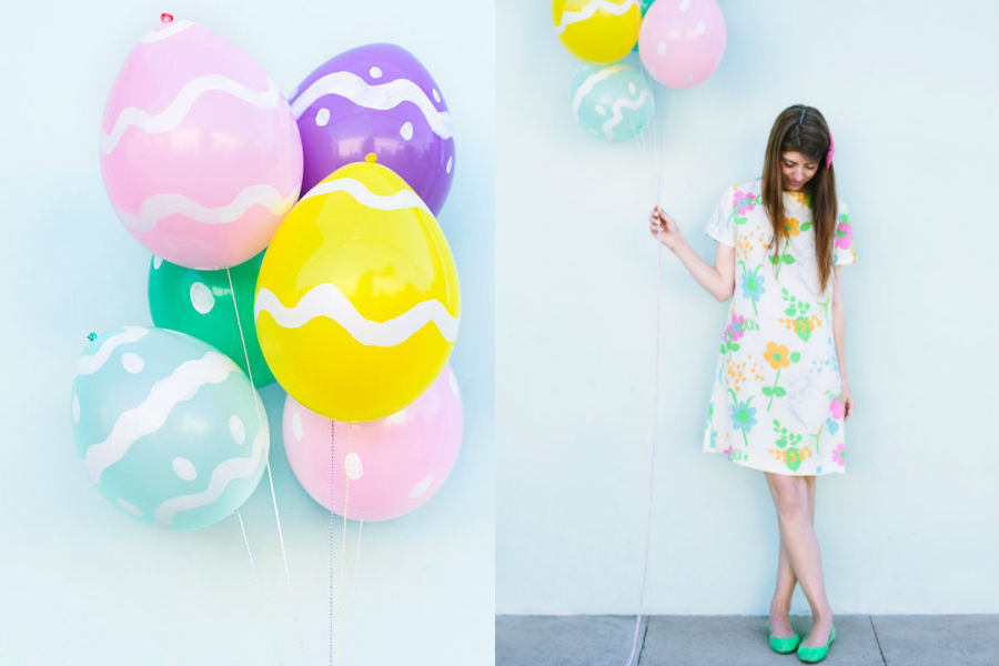 Ballons Fügen Sie einem Raum ein Party-Ambiente hinzu und sind beide auffälliger und weniger unordentlich, dass tatsächliche Eierarrangements. Mit strategisch lackierten (oder geschlossenen) Pastellballons wird dieser Look mit dem geringsten Anstrengungen am meisten getan.