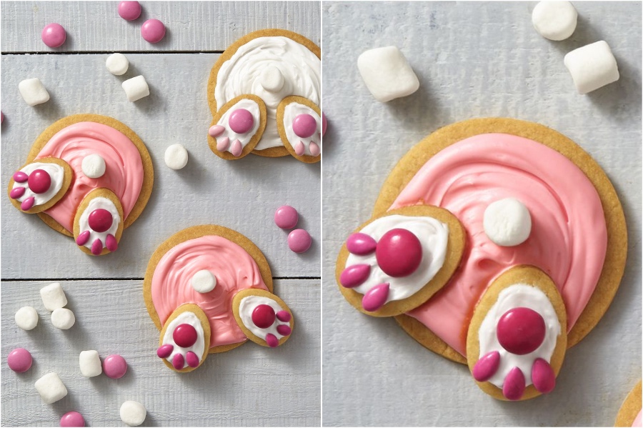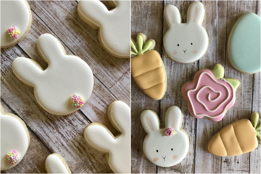 Osterhasen, Karotten und Bunny Buts mit entzückenden kleinen Streuschwänzen haben sich schon lange ein Klassiker, wenn es um Zuckerplätzchen geht. Sie sollten auf jeden Fall ein paar davon herstellen.