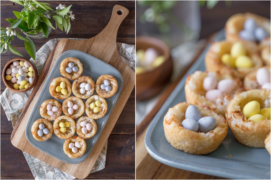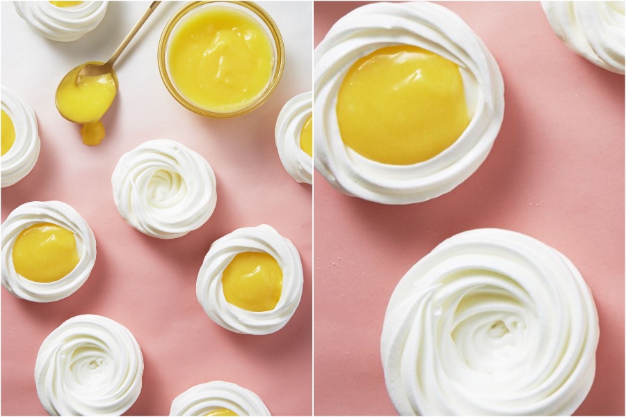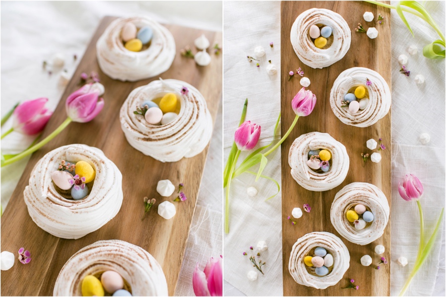 Hier ist ein kluger Twist auf den traditionellen Osternestern. Dies sind Meringues mit leckerem furchtbarem Zitronenquark-Füllung. Sie sind absolut göttlich und sehen aus wie Ostereier. Es ist ein Win-Win-Win.