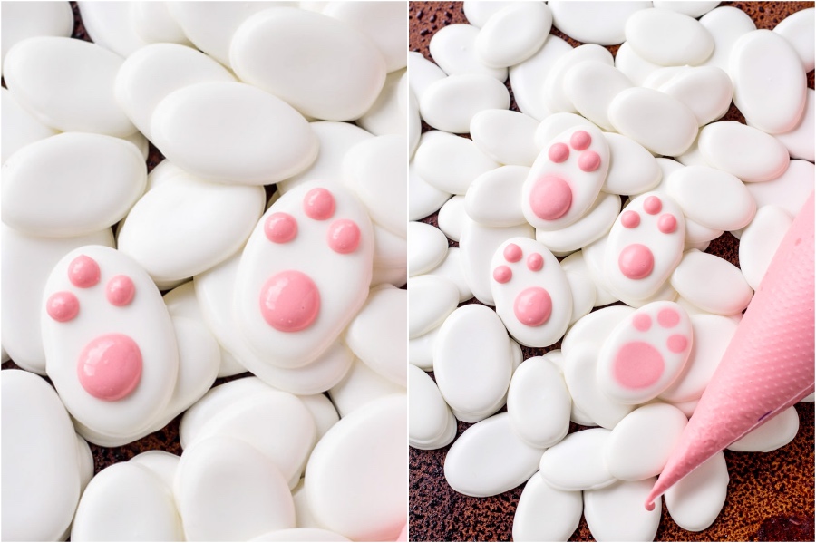 Rosa und weiße Häschen, aber aus Süßigkeitenwolle? Ist das erstaunlich oder was? Ein lustiger und niedlicher Weg, um Ihre Kekse zu schmücken, die auf jeden Fall ein Lächeln auf jedes Gesicht bringen wird.