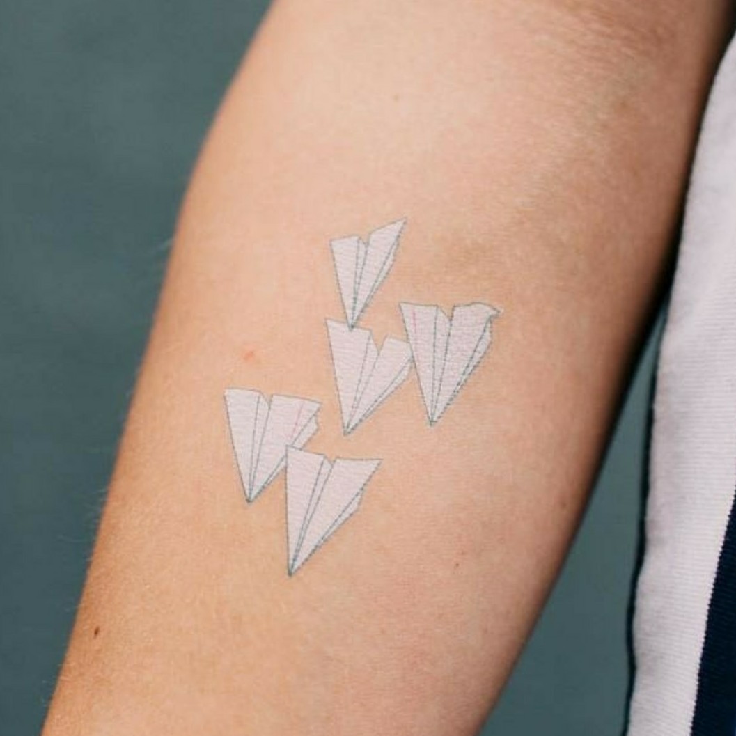 Wenn Sie sich nicht zu ernst nehmen, und wie Hommagen zur Kindheit, dieses einfache, aber spielerische Papierflugzeug-Tattoo könnte der Look for You sein. Sie können auswählen, wie viele Ebenen Sie möchten, und wenn Sie möchten, dass sie eine Form erstellen möchten.