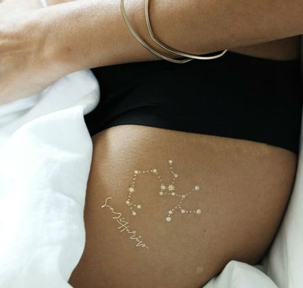 Constellation und Astrology Tattoos sehen in Weiß gut aus, da sie den Mond und die Sterne realistischer nachahmen. Eine beliebte Wahl für diejenigen, die mit den Lunar-Zyklen, den Sternen oder deren Spiritualität stimmt. Wählen Sie eine Konstellation, die Ihnen etwas bedeutet.