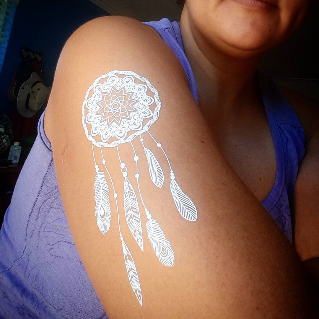 Dreamcatcher sehen persönlich ziemlich cool aus, und sogar noch in einer weißen Tattoo-Form. Mit der richtigen Federdetails und des Looks der integrierten Bewegung können Sie sicher sein, dass alle Ihre Träume von diesem Moment an süßes Segeln sein werden.