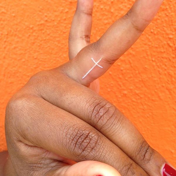 Ein Kreuz könnte eine interessante Wahl sein, wenn Sie religiös sind, aber dies kann leicht für ein anderes winziges Tattoo ausgetauscht werden. Ein Weg besseres Zubehör als ein Ring (obwohl Sie diese Gelegenheit auch verwenden können, um einen Ring an Ihrem Finger zu tätowieren), ist dieser Look semi-sichtbar und eine flirty, um sich auszudrücken.