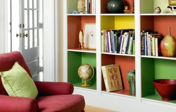 3. Malen Sie die Innenseiten von Bücherregeln.Wenn Sie ein Mieter sind und Ihr Vermieter es verlieren wird, wenn Sie die Haustür malen, ist dies eine raffinierte Möglichkeit, einen Hauch von Farbe hinzuzufügen. Es macht einen großen Einfluss auf ein Akzentstück, mit wenig zu keiner Anstrengung!