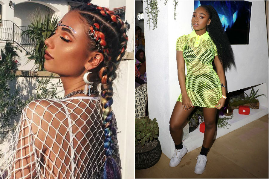Mesh-Outfits sind auf jeden Fall ein Hit in diesem Jahr. Und je verrückter die Farbe - desto besser. Sie könnten passende Sets, Co-ords oder sogar vollständig auf Mesh bodycon Kleider tragen und das Sie garantiert eine der kühlen Insta-Bösewichten bei Coachella sein.