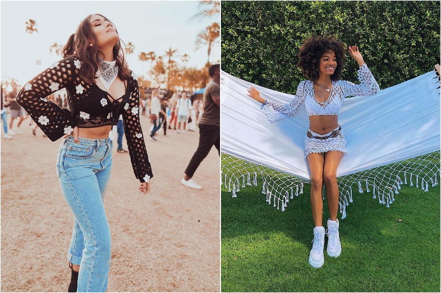 Verschiedene Spitzen, Co-ord-Sets und Kleider mit Ausschnitt Mustern sind ein weiteres Muss für Fans Coachella. Ist das Top-Häkeln, ausgeschnitten oder etwas anderes? Wir wissen nicht, aber diese Art von Outfits waren überall so weit.