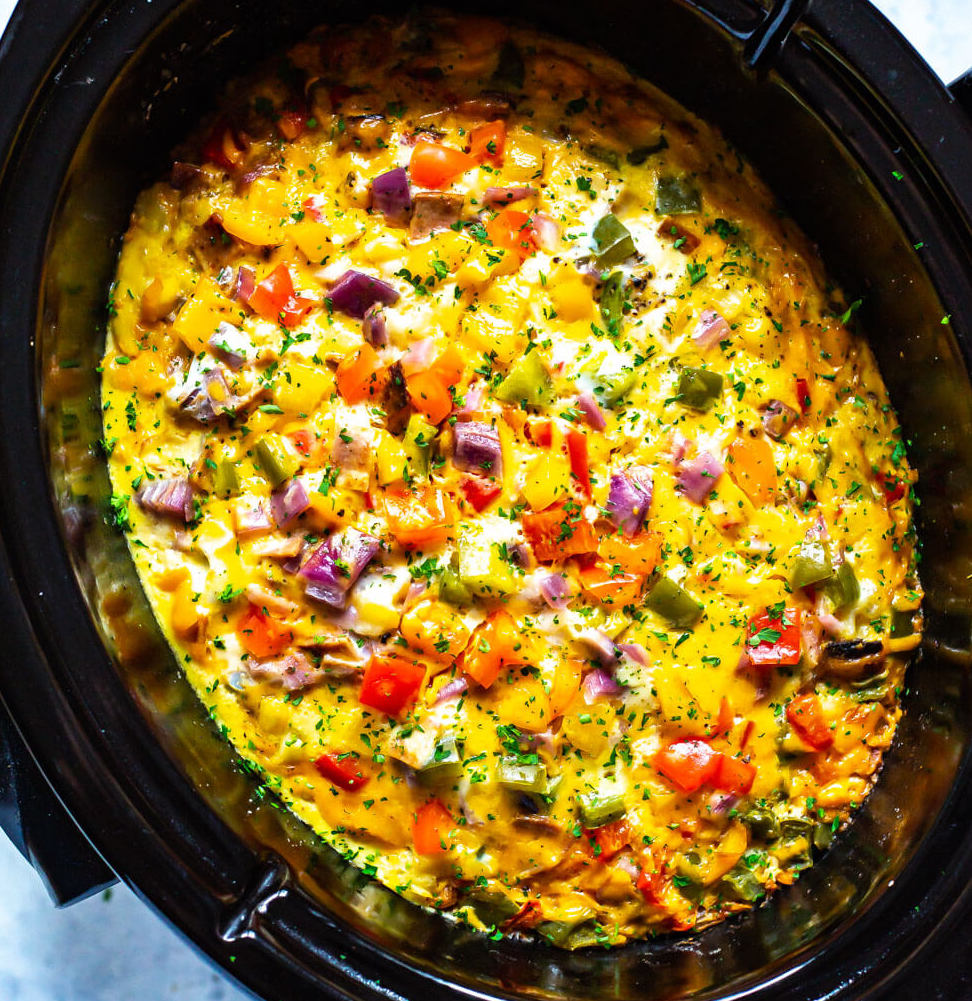 Ein großes Crockpot zubereitetes Frühstück ist das Geschenk, das weiterhin gibt, und macht ein Teller groß genug, um eine Menschenmenge zu füttern. Was noch besser ist, können Sie es in der Nacht zuvor in die Nacht legen und bis zum Morgen vergessen? Für diese Mahlzeit werfen Sie in Hash Browns, Eier, Käse, gewürfelte Gemüse und gewünschte Gewürze.