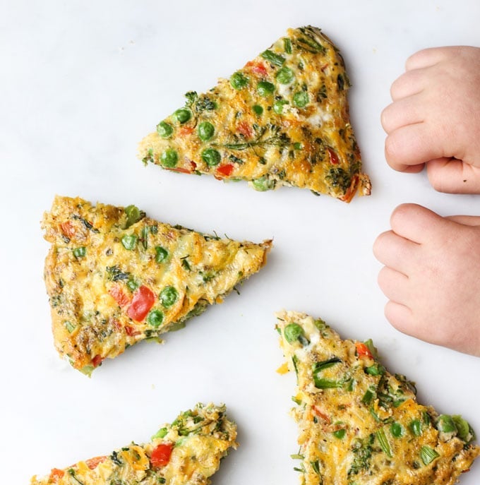 Diese All-in-One-Mahlzeit sorgt für ein herzhaftes, flauschiges Frühstück, das nahrhaft und befriedigend ist. Für dies alle vegetarischen Frittata, Kartoffeln, Pilzen, Spargel, Tomaten und Käse zusammen mit den Eiern.