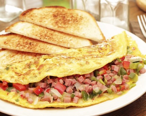 Dieses Omelett ist ein klassischer und herzlicher Weg, um morgen früh Eier zu genießen. Zutaten umfassen Paprika, Käse, Zwiebel und Schinken. Wenn Sie sich frisky fühlen, probieren Sie einige Jalapenos, trotzen Sie Sriracha oder andere Gewürze, um Ihrem Omelett einen Kick zu geben.