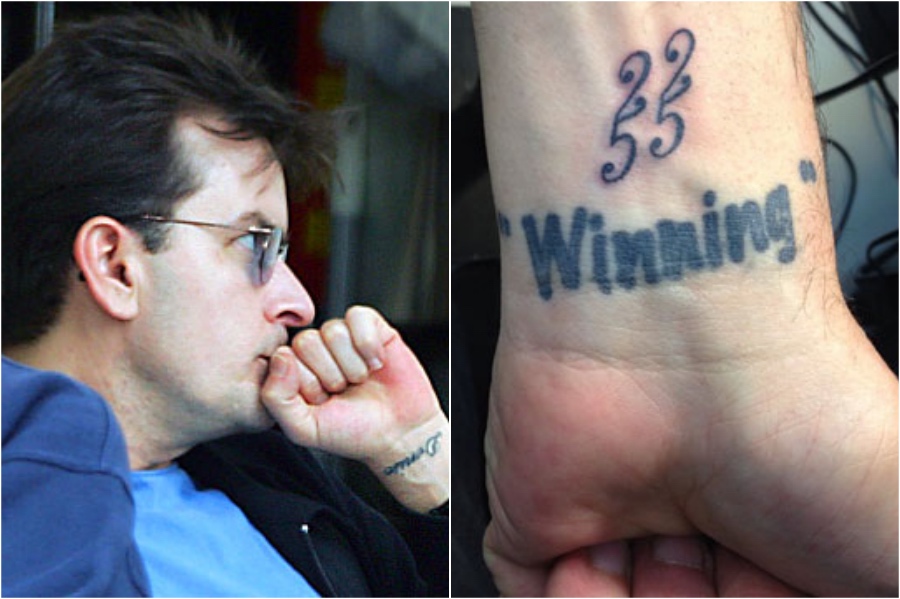 Und wenn Sie dachten, wählten Denise eine kindische Tattoo Vertuschung - warten, bis Sie sehen, was ihr Ex-Mann Charlie Sheen hat. Er hatte eine Tätowierung, die sagte: „Denise“ an seinem Handgelenk und jetzt ratet mal, was es sagt. Gewinnen zu können. Ja, Charlie, das ist sehr ausgereift und schon gar nicht dumm.