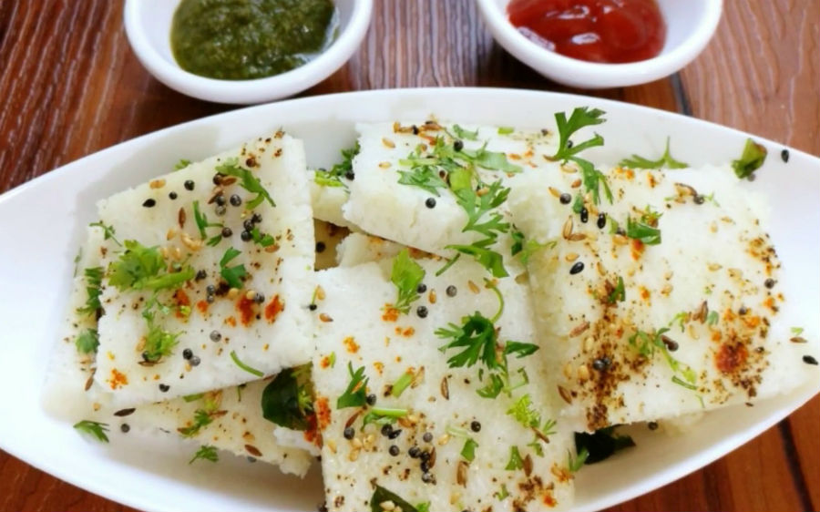 Schwarzer Gramm, saurer Quark und Reis sind, was Sie brauchen, um diesen zarten schwammigen Kuchen zu machen. Etwas ähnlich dem bekannten Idlis bietet weiße Dhokla einen sauren Geschmack mit einem bisschen lackigen Chili und Ingwer.