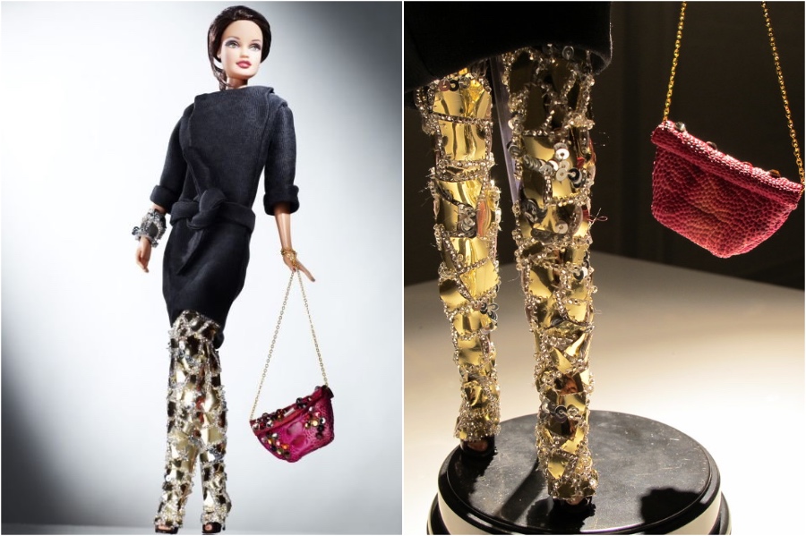 Fashion Designer Devi Kroell hat diese Barbie für ein Wohltätigkeitsveranstaltung zugemessen, wo es anschließend für 1075 US-Dollar versteigert wurde. Die Puppe trug ein einfaches schwarzes Kleid, aber die einzigartigen Schuhe und Handtasche machten es wirklich besonders.