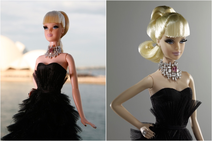 Stefano Canturi wurde eingestellt, um eine Barbie für den Start der Barbie-Grundlagen in Australien zu entwerfen. Und er nahm dieses Projekt wirklich ernst, entwirft sowohl das Kleid als auch das Zubehör. Diese Halskette hat nicht nur 3 Karat weiße Diamanten, sondern auch super seltene rosa australische Diamanten. Es wurde für spektakuläre 302.500 US-Dollar versteigert, was nur 2k dabei ist, was diese Halskette wert ist, und der Erlös wurde die Brustkrebs-Forschungsgemeinschaft gespendet