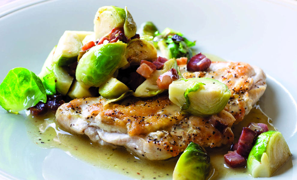 In einer Pfanne aus herzhafter Güte kocht, knusprige Hühnerbeine mit gerösteten Brussel-Sprossen und mit zerkleinerter Käse. Diese leckere Mahlzeit ist ideal, um mit Ihrem Termin einen schönen Abend in Innenräumen zu beginnen.