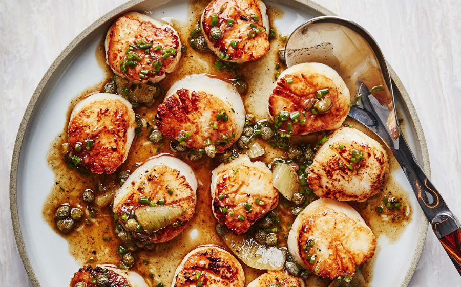 Die köstlichen Jakobsmuscheln sind an goldenbraune Perfektion getrennt und mit Butter serviert, die mit Kräutern infundiert werden. Jakobsmuscheln sind ein schnelles Gericht, um sich vorzubereiten, was Ihnen mehr Zeit gibt, um mit Ihrem Datum zu verbringen.