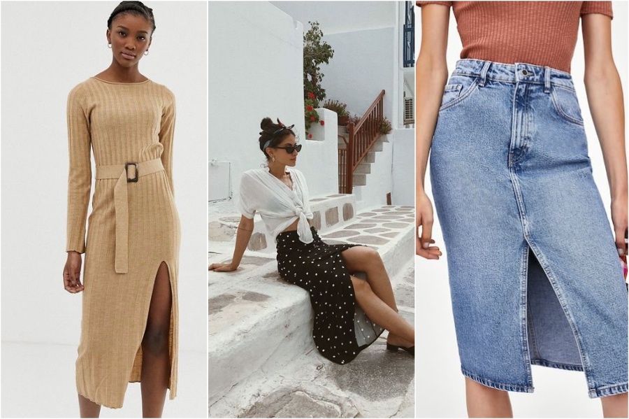 Midi-Röcke sind für eine heiße Minute in der Nähe, aber wir mögen den Hinzufügen des Schlitzes für den Sommer. Und es funktioniert wirklich in jedem Material, sei es ein Strickrock, ein Denim eines oder eines dieser super leichten Blumen, den Sie im Urlaub tragen würden.