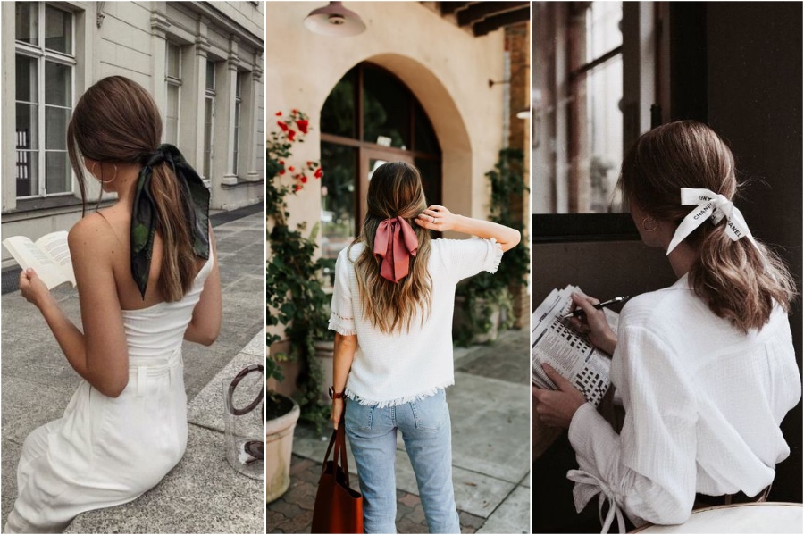 In diesem Sommer dreht sich alles um Haarschmuck. Große Haarnadeln und Ruderereien sind in. Denken Sie an 80er und Mittelschule. Eine andere Möglichkeit, um sofort mehr Sommer zu sehen, besteht darin, Bögen und Bänder in den Haaren zu tragen.