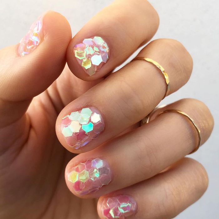 Dieser niedliche sprudelnde negative Weltraumnagelkunst erinnert Sie an den ganzen Tag über an Kaltwasserströmen. Es ist das erfrischende Design aller Zeiten.