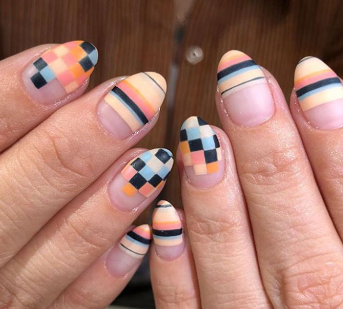 Pastellstreifen und Kontrolleure sind eine perfekte Wahl, wenn Sie Ihre Nägel benötigen, um tagsüber sowohl tagsüber und abends umwerfend auszusehen. Sie können leicht von lässig zu posh in einem Augenblick übergehen!