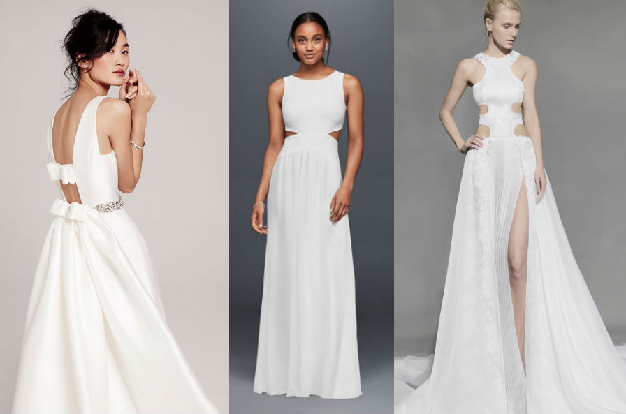 Auf Wiedersehen Puffärmeln, dramatische Züge und zusätzliche bedazzled aussieht. In diesem Jahr dreht sich alles um glatt, glatt und einfach, wie Meghan Markle uns zeigte. Versuchen Sie, eine niedrige gesichert, hohe Hals schmal geschnittenes Kleid mit einer Meerjungfrau Boden.