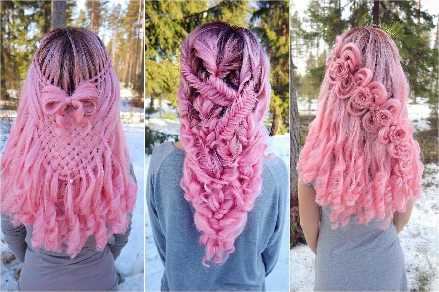 10. Hier ist eine Collage von wunderschönen und unglaublich komplizierten geflochtenen Frisuren Suvi auf ihrer rosa Perücke. Wir sind absolut verwirrt und fasziniert von diesen und haben keinen Hinweis, wie sie mit diesem Zeug kommt.