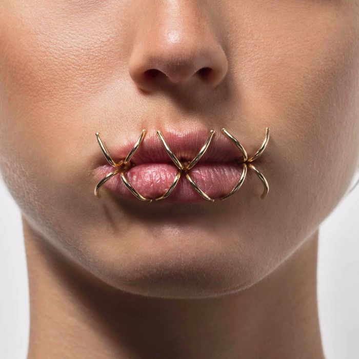 Facejewelry ist ein Trend, chic und redaktionelle scheint, sondern auch uncomfortable.Resting Metallfläche, anyone? Speziell für diese starke Aussage mouthjewelry.