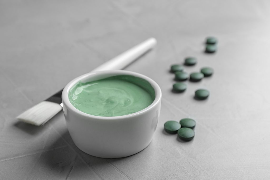 Wenn Sie Flecken oder einen ungleichmäßigen Hautton haben, sollten Sie ein Rezept mit Algen oder Spirulina in Betracht ziehen. Diese Formel fungiert als Schale und bekämpft Hyperpigmentierung mit einer Spirulina aus Vitamin C sowie blaue Algen, abgeleitetes Antioxidans. Das Gel hat einen kribbelnden Effekt, der empfindliche Hauttypen nicht reizt.
