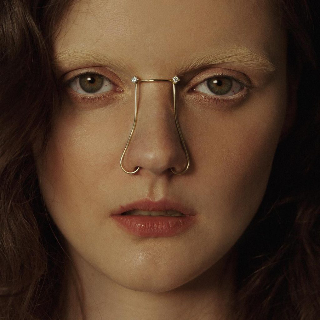 "Ihre Sammlung von handgefertigten Gesichtsschmucks ist von radikaler Stammesschmuck inspiriert, der darauf abzielt, die Idealisierung der Medien mit der Idealisierung der Schönheit und der modernen Besessenheit mit plastischer Chirurgie zu bekämpfen, indem es den Trägern ermöglicht, ihr Erscheinungsbild an der Willen anzupassen, und ermächtigen sie mit der Verbesserung der Verbesserung statt. Eigenschaften ", sagte Trend Board.