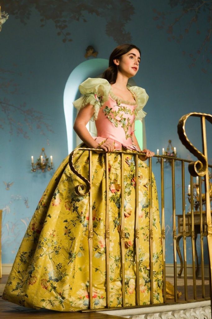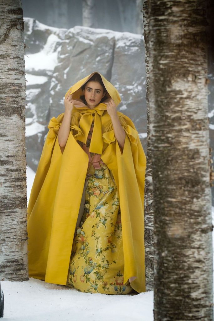 Wenn Sie Snow White Gonna spielen sind, dann musst du ein großes, weites Kleid zu tragen, und das ist genau das, was Lily Collins in dem Film zu tunSpieglein Spieglein. Dieses schöne Kleid, mit einem rosaen Mieder, grünen Ärmeln und einem massiven gelben Rock mit Blumenstickerei verziert ist als Märchen wie Sie bekommen können. Aber es trägt, ist nicht einfach, wie es etwa 30 Meter Stoff gemacht hat verfügt, ein Korsett und der Rock hat ein Drahtgitter es voluminöser zu machen. Und dann ist da noch das Kap sie an der Spitze trug. Klingt wie es zu tragen war ein Training, aber das Ergebnis ist es wirklich wert.