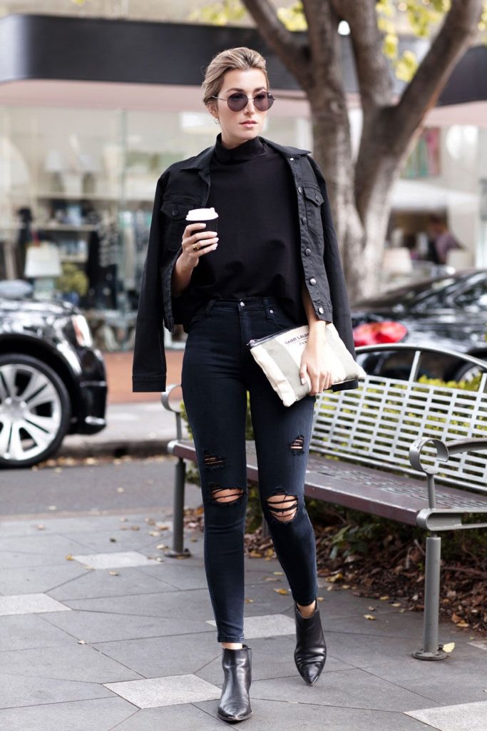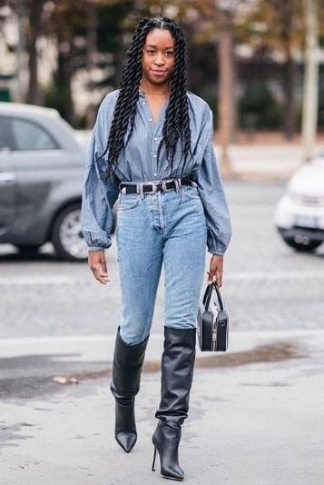 Wenn Sie ein Denim-Top- und Denim-Jeans tragen, Justpushes den Look in die Overkill-Zone. Vermeiden Sie Zubehör wie Denimhats, Schuhe, Handtaschen, Schals oder irgendein anderes Anhängsel und Ihr Denimget Up ist alles besser dafür.