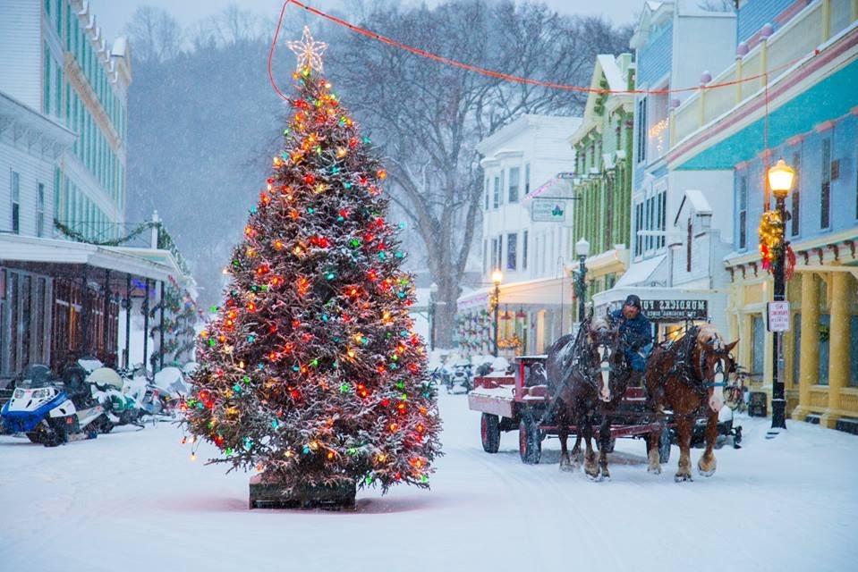 Detroit ist nicht genau dein Bild eines Winterwunderlandes, aber erhebere die Inselstadt über die Fähre und du wirst in eine andere Ära transportiert. Menschen reisen mit Pferd und Buggy. Santa besucht jedes Kind zu Weihnachten, und es gibt einen jährlichen Weihnachtsbasar mit lila Themen - Mackinacs Lieblingsfarbe.
