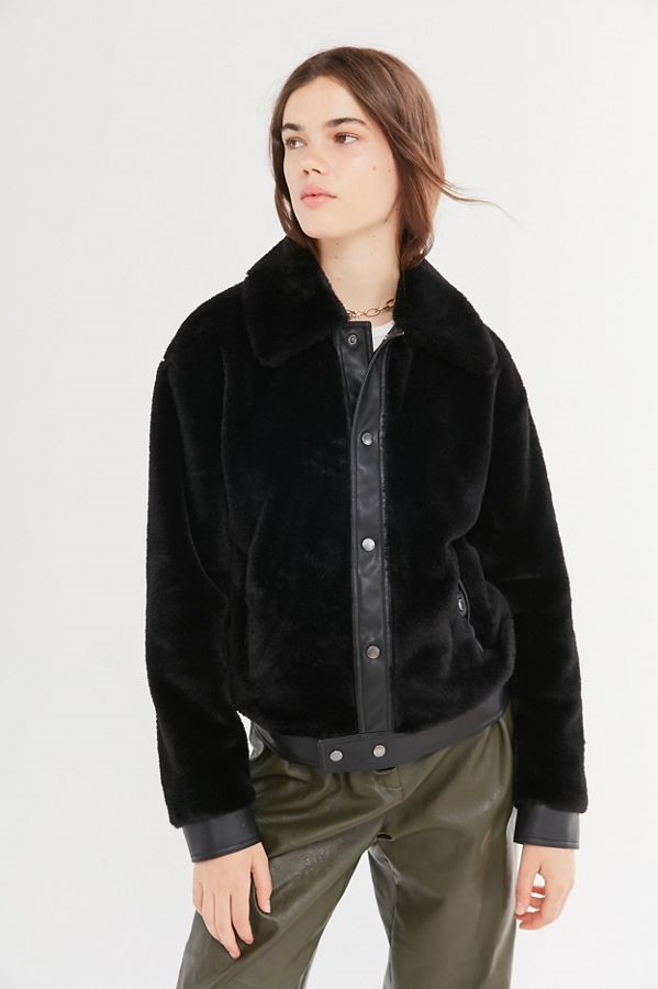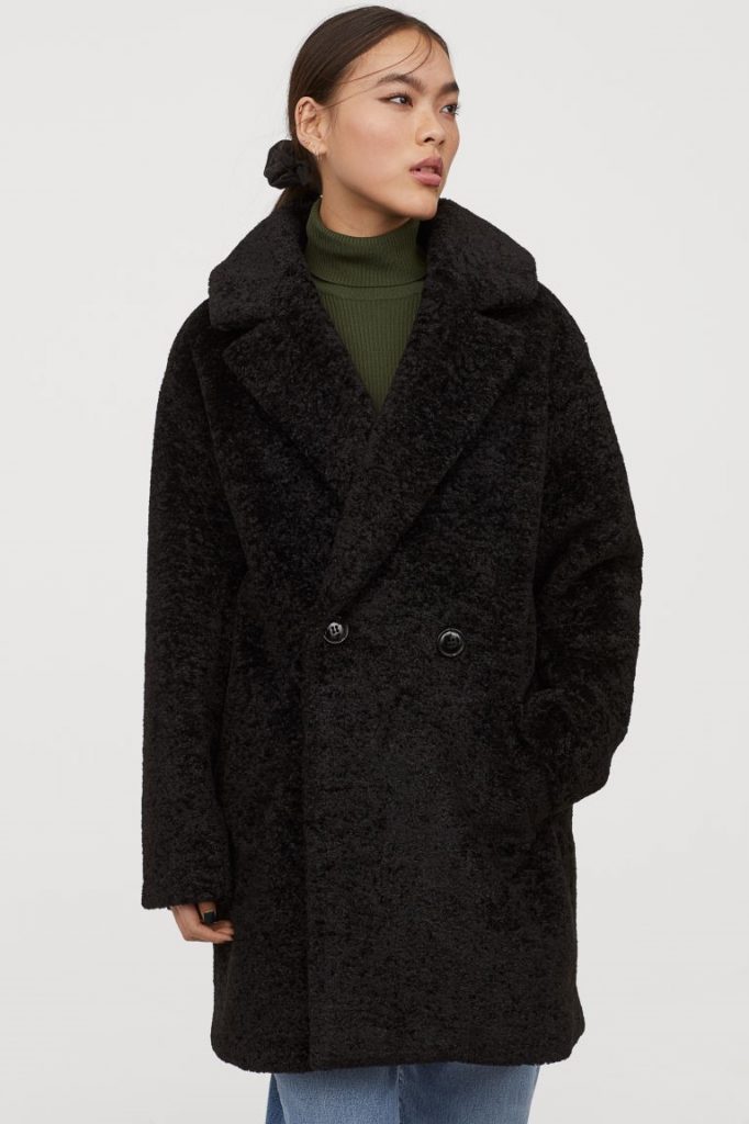 Schwarz wird nie müde, und dieses Faux-Pelz-zweireihige Wiedergabe ist ein reiner Beweis dafür. Es ist gesäumt, um eine hohe Qualität sicherzustellen und Sie wärmer zu halten. Dieser maschinenwaschbare Look ist perfekt mit einem hohen Rollkragen.
