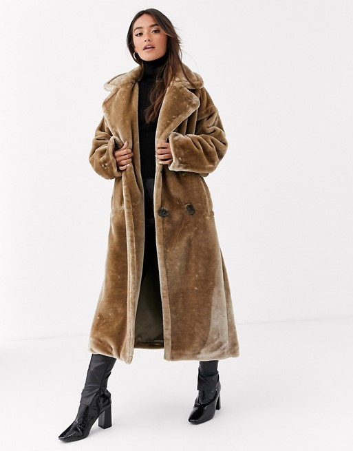 Dieser ASOS-Fell-MXI-Mantel mit tadellosen Nahtdetails ist offiziell unser Wintermantel, bis der Groundhog uns sagt, dass es sicher ist, sich sicher wieder zu deaktivieren. Der braune Farbton auf diesem schnellen verkaufenden Mantel ahmt auf unglaublich realistische Weise Fell ein, weshalb es die Top-Pick des Herbeautys ist.