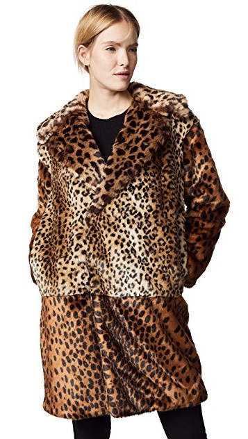 Dieser Pelzmantel hat eine Kapuze, die im Wesentlichen die Erlaubnis ist, eine Decke um den gesamten Oberkörper umzuwickeln. Es bleibt schick und nicht zu schäbig mit den neutralen Farbpaletten von Braun und eisigem Grau. Es trifft direkt an der Hüfte mit einer entspannten Passform, die über Jeans und ein T-Stück perfekt ist.